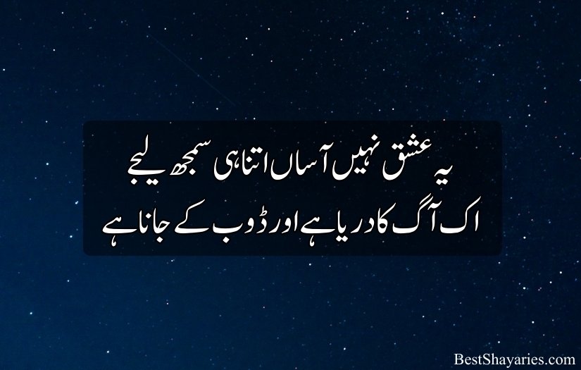 Ishq shayari in Urdu is a powerful expression of deep and intense love. It goes beyond simple romance and talks about true devotion, sacrifice, and strong emotions. Urdu poets describe ishq as a feeling that controls the heart and soul. The words are soft but full of passion, making the poetry deeply touching and meaningful.